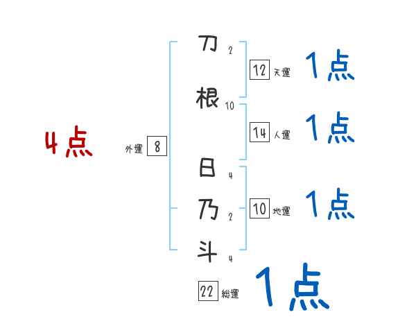 天運![]() | 刀根日乃斗さんの天運は12画の1つ星!簡単な失敗で諦めてしまいやすいかも。着実に行動すると良いでしょう。 家系が持つ宿命的な運勢を表します。祖先から受け継いだ苗字ですので自分の力が及びません。家柄を象徴します。 |