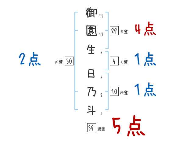 御園生日乃斗さんの画数の鑑定結果