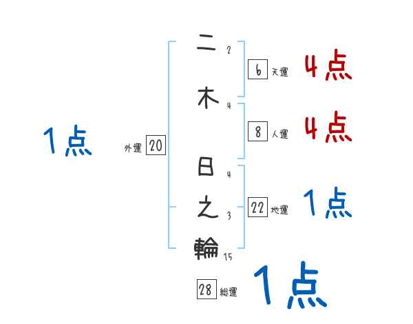 天運![]() | 二木日之輪さんの天運は6画の4つ星!慎重な努力家で信頼を得る。誠実な精神で向上心に優れる。 家系が持つ宿命的な運勢を表します。祖先から受け継いだ苗字ですので自分の力が及びません。家柄を象徴します。 |