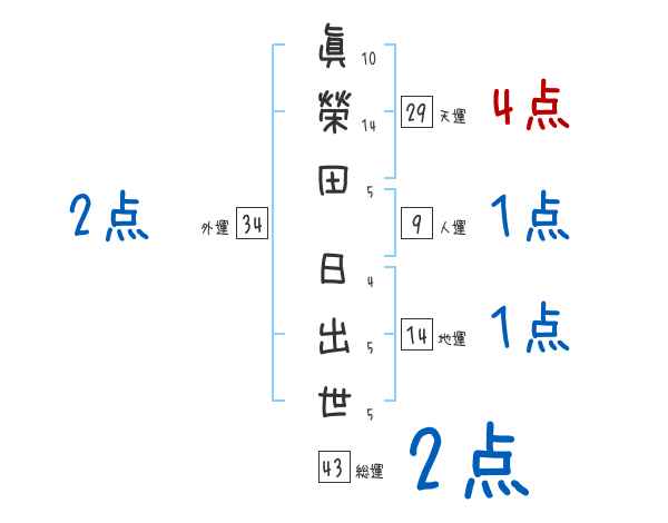 眞榮田日出世さんの画数の鑑定結果