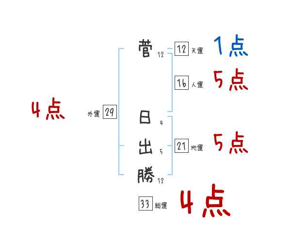 菅日出勝さんの画数の鑑定結果
