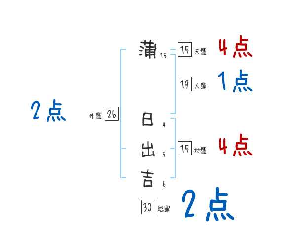 蒲日出吉さんの画数の鑑定結果