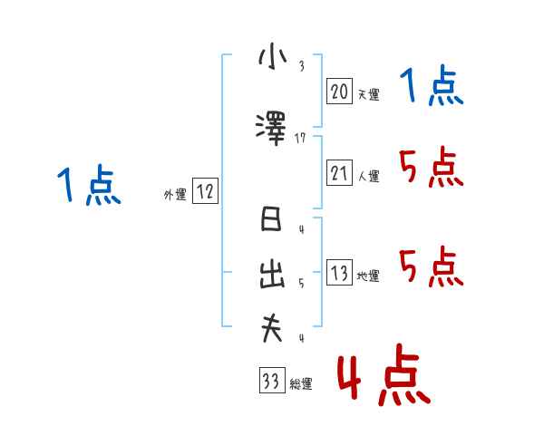 小澤日出夫さんの画数の鑑定結果