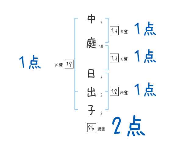 天運![]() | 中庭日出子さんの天運は14画の1つ星!人に対して優しいがストレスを溜め込みがち。人間関係のトラブルを避けるよう気をつけましょう。 家系が持つ宿命的な運勢を表します。祖先から受け継いだ苗字ですので自分の力が及びません。家柄を象徴します。 |