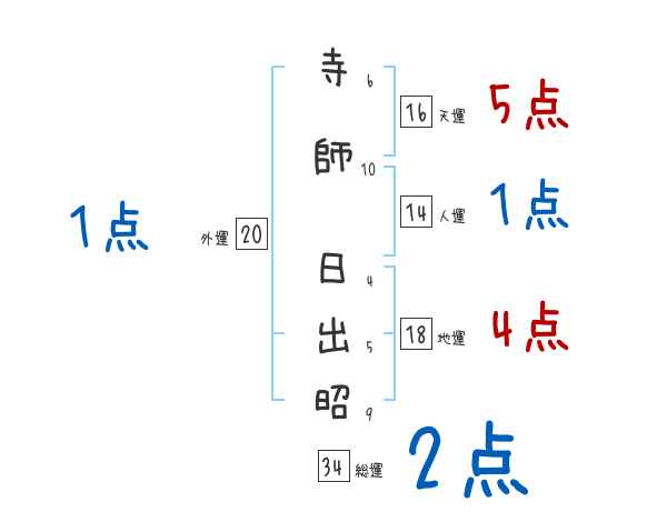 総運![]() | 寺師日出昭さんの総運は34画の2つ星!独創性に優れるが、自尊心が強く災難に注意しましょう。 あなたの人生を表す1番重要な運勢です。生涯を通じて影響する総合運となり、主に50歳以降の晩年期に影響を及ぼします。 |