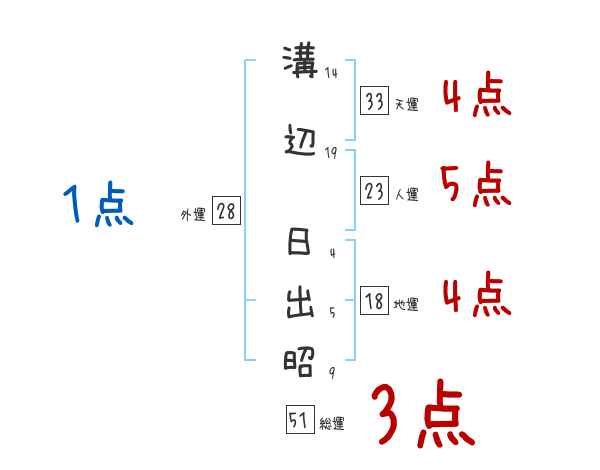 溝辺日出昭さんの画数の鑑定結果