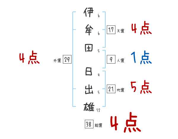 伊牟田日出雄さんの画数の鑑定結果