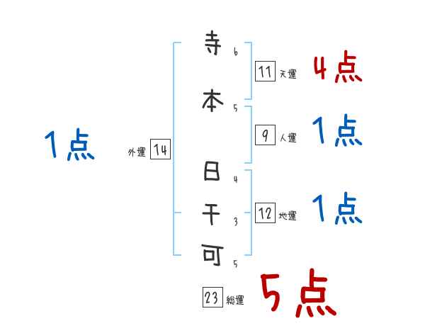 外運![]() | 寺本日千可さんの外運は14画の1つ星!人に対して優しいがストレスを溜め込みがち。人間関係のトラブルを避けるよう気をつけましょう。 生活面を象徴する運勢です。外部から受ける影響力を表し、結婚運、家庭運や職場、環境への順応性を表します。 |
