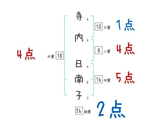 寺内日南子さんの画数の鑑定結果