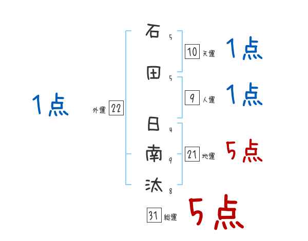 外運![]() | 石田日南汰さんの外運は22画の1つ星!努力することが苦手ないっぽう手先が器用。芸術性にも優れる。 生活面を象徴する運勢です。外部から受ける影響力を表し、結婚運、家庭運や職場、環境への順応性を表します。 |