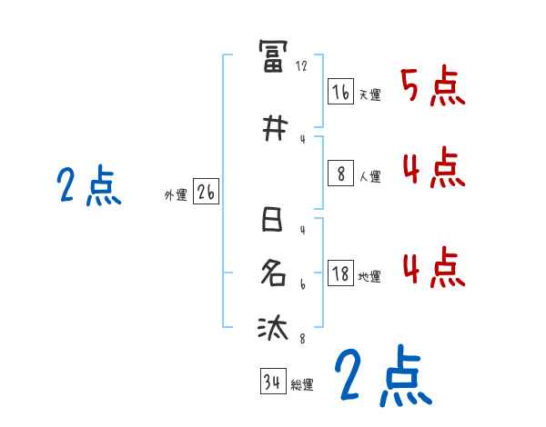 外運![]() | 冨井日名汰さんの外運は26画の2つ星!波瀾万丈かも。信頼できる人を大事にしましょう。 生活面を象徴する運勢です。外部から受ける影響力を表し、結婚運、家庭運や職場、環境への順応性を表します。 |