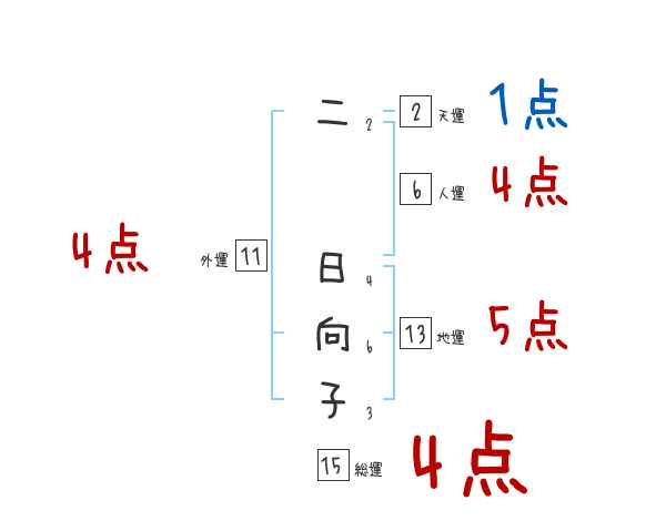 二日向子さんの画数の鑑定結果