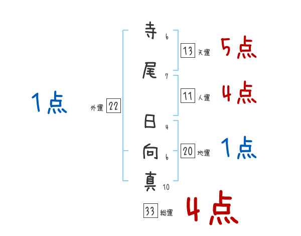 寺尾日向真さんの画数の鑑定結果