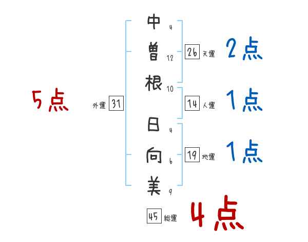 外運![]() | 中曽根日向美さんの外運は31画の5つ星!社交性があり判断力に優れる。順風満帆な人生で円満な生活。 生活面を象徴する運勢です。外部から受ける影響力を表し、結婚運、家庭運や職場、環境への順応性を表します。 |