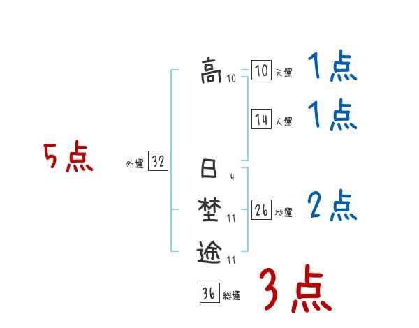 高日埜途さんの画数の鑑定結果