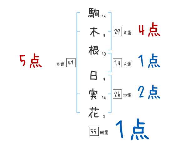 天運![]() | 駒木根日実花さんの天運は29画の4つ星!完全主義で才能がある。厳格な心の持ち主。 家系が持つ宿命的な運勢を表します。祖先から受け継いだ苗字ですので自分の力が及びません。家柄を象徴します。 |