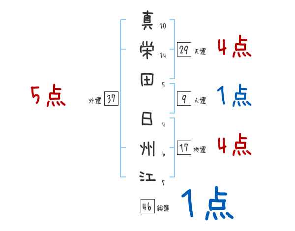 真栄田日州江さんの画数の鑑定結果