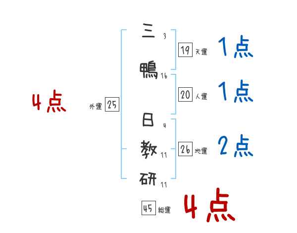 家系が持つ宿命的な運勢を表します。祖先から受け継いだ苗字ですので自分の力が及びません。家柄を象徴します。