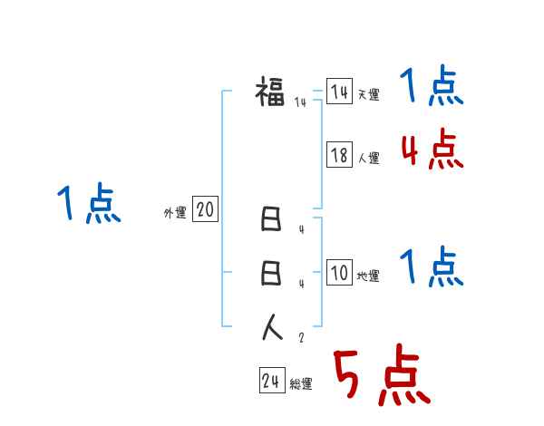 天運![]() | 福日日人さんの天運は14画の1つ星!人に対して優しいがストレスを溜め込みがち。人間関係のトラブルを避けるよう気をつけましょう。 家系が持つ宿命的な運勢を表します。祖先から受け継いだ苗字ですので自分の力が及びません。家柄を象徴します。 |