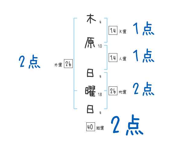 木原日曜日さんの総運は40画の2つ星