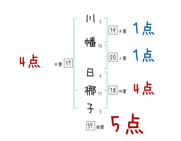 外運![]() | 川幡日梛子さんの外運は17画の4つ星!積極的な行動力。地位を気づき財産を手に入れる。純粋な心と直感力。 生活面を象徴する運勢です。外部から受ける影響力を表し、結婚運、家庭運や職場、環境への順応性を表します。 |