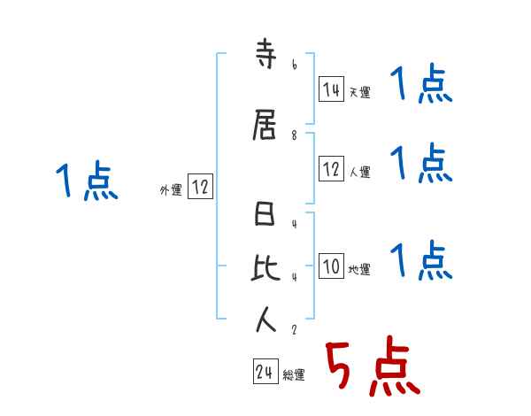 天運![]() | 寺居日比人さんの天運は14画の1つ星!人に対して優しいがストレスを溜め込みがち。人間関係のトラブルを避けるよう気をつけましょう。 家系が持つ宿命的な運勢を表します。祖先から受け継いだ苗字ですので自分の力が及びません。家柄を象徴します。 |