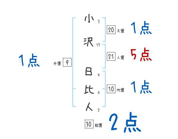 総運![]() | 小沢日比人さんの総運は30画の2つ星!浮き沈みの激しさに注意しましょう。 あなたの人生を表す1番重要な運勢です。生涯を通じて影響する総合運となり、主に50歳以降の晩年期に影響を及ぼします。 |