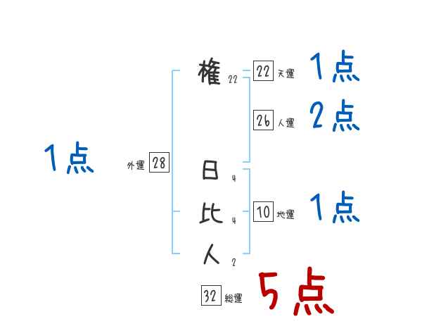 権日比人さんの画数の鑑定結果
