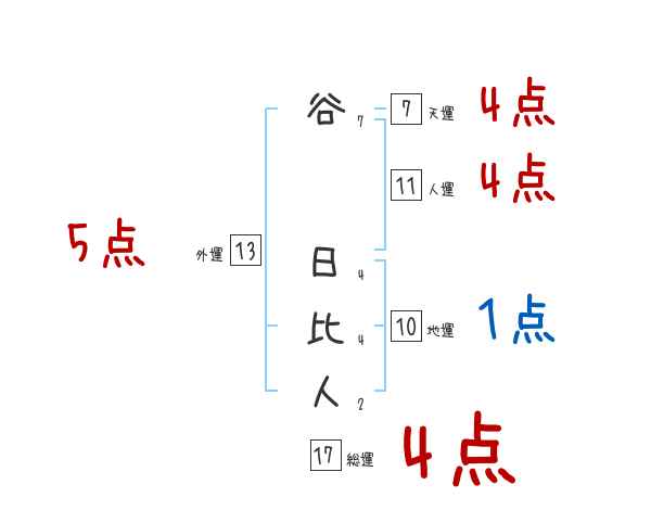 谷日比人さんの画数の鑑定結果