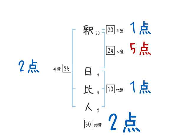 総運![]() | 釈日比人さんの総運は30画の2つ星!浮き沈みの激しさに注意しましょう。 あなたの人生を表す1番重要な運勢です。生涯を通じて影響する総合運となり、主に50歳以降の晩年期に影響を及ぼします。 |