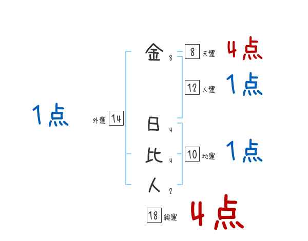 外運![]() | 金日比人さんの外運は14画の1つ星!人に対して優しいがストレスを溜め込みがち。人間関係のトラブルを避けるよう気をつけましょう。 生活面を象徴する運勢です。外部から受ける影響力を表し、結婚運、家庭運や職場、環境への順応性を表します。 |