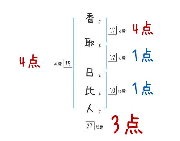 香取日比人さんの画数の鑑定結果
