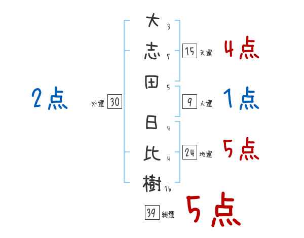 大志田日比樹さんの画数の鑑定結果