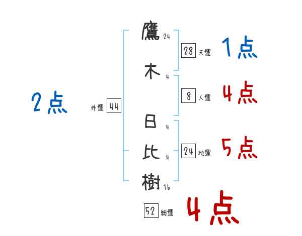 鷹木日比樹さんの画数の鑑定結果