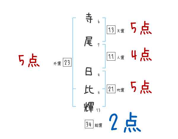 寺尾日比輝さんの画数の鑑定結果