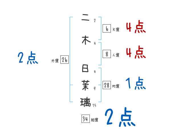 二木日茉璃さんの画数の鑑定結果
