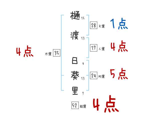 樋渡日葵里さんの外運は35画の4つ星
