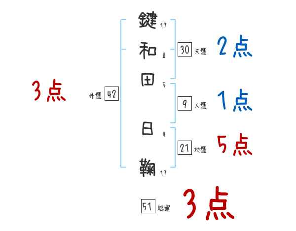 鍵和田日鞠さんの画数の鑑定結果