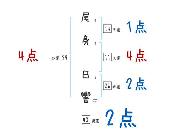 尾身日響さんの画数の鑑定結果
