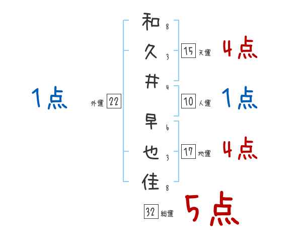 総運![]() | 和久井早也佳さんの総運は32画の5つ星!柔軟性があり成功する。チャンスが多く金運が良い。 あなたの人生を表す1番重要な運勢です。生涯を通じて影響する総合運となり、主に50歳以降の晩年期に影響を及ぼします。 |