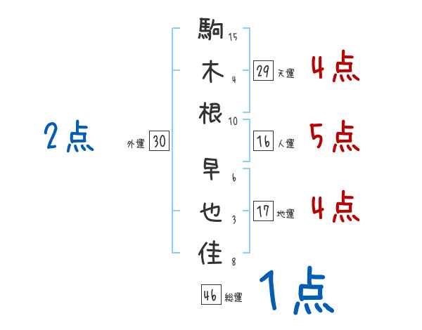 外運![]() | 駒木根早也佳さんの外運は30画の2つ星!浮き沈みの激しさに注意しましょう。 生活面を象徴する運勢です。外部から受ける影響力を表し、結婚運、家庭運や職場、環境への順応性を表します。 |