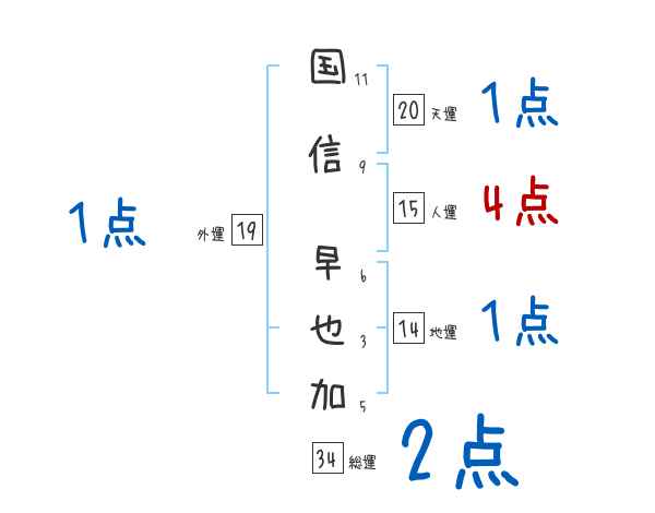 外運![]() | 国信早也加さんの外運は19画の1つ星!優れた才能を持ちますが、協調性が足りないことも。周りの人と協力する事を意識しましょう。 生活面を象徴する運勢です。外部から受ける影響力を表し、結婚運、家庭運や職場、環境への順応性を表します。 |
