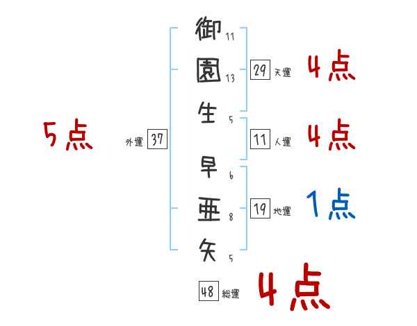 外運![]() | 御園生早亜矢さんの外運は37画の5つ星!努力家で順応性に優れる。現実的な考え方ができ忠実に物事をこなす。 生活面を象徴する運勢です。外部から受ける影響力を表し、結婚運、家庭運や職場、環境への順応性を表します。 |