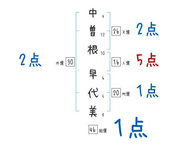 中曽根早代美さんの画数の鑑定結果