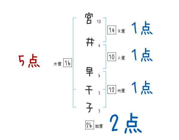 宮井早千子さんの画数の鑑定結果