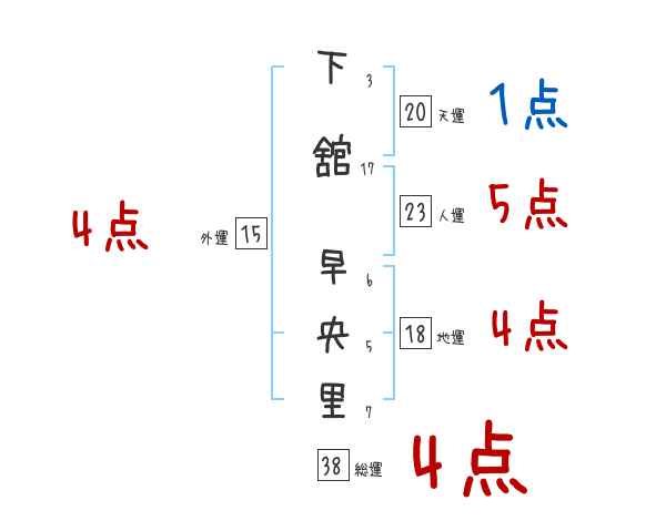 下舘早央里さんの画数の鑑定結果