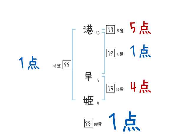 総運![]() | 港早姫さんの総運は28画の1つ星!家庭環境に注意。スポーツで活躍できる能力があるかも。 あなたの人生を表す1番重要な運勢です。生涯を通じて影響する総合運となり、主に50歳以降の晩年期に影響を及ぼします。 |
