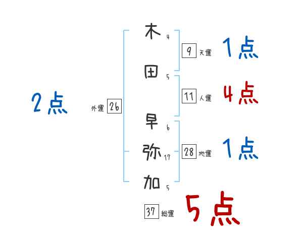 天運![]() | 木田早弥加さんの天運は9画の1つ星!消極的で才能を発揮することが苦手なことも。周りの意見に耳を傾けましょう。 家系が持つ宿命的な運勢を表します。祖先から受け継いだ苗字ですので自分の力が及びません。家柄を象徴します。 |