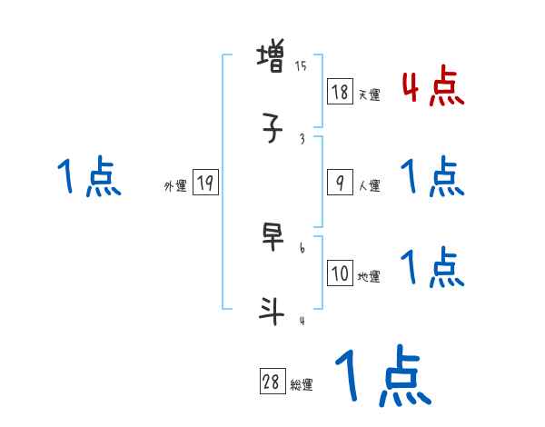 外運![]() | 増子早斗さんの外運は19画の1つ星!優れた才能を持ちますが、協調性が足りないことも。周りの人と協力する事を意識しましょう。 生活面を象徴する運勢です。外部から受ける影響力を表し、結婚運、家庭運や職場、環境への順応性を表します。 |