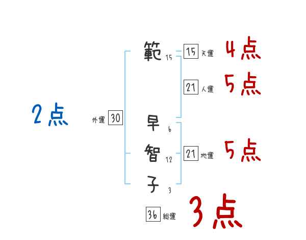 人運![]() | 範早智子さんの人運は21画の5つ星!統率力がある。独立し成功する。名誉を手に入れる。 性格や才能などを表す2番目に重要な運勢です。人間関係や協調性、社会的な成功に影響します。主に20歳から50歳ぐらいまでの中年期の運勢を表します。 |